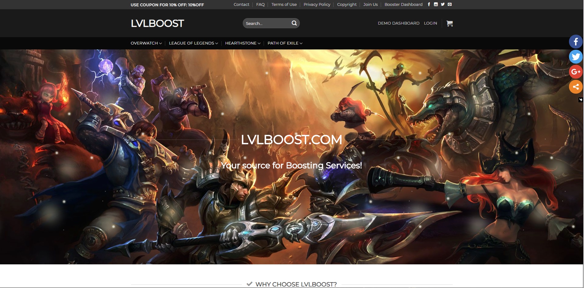 Sells boosting services for various games, like League of Legends, Overwatch, Heathstone with custom calculators and features!